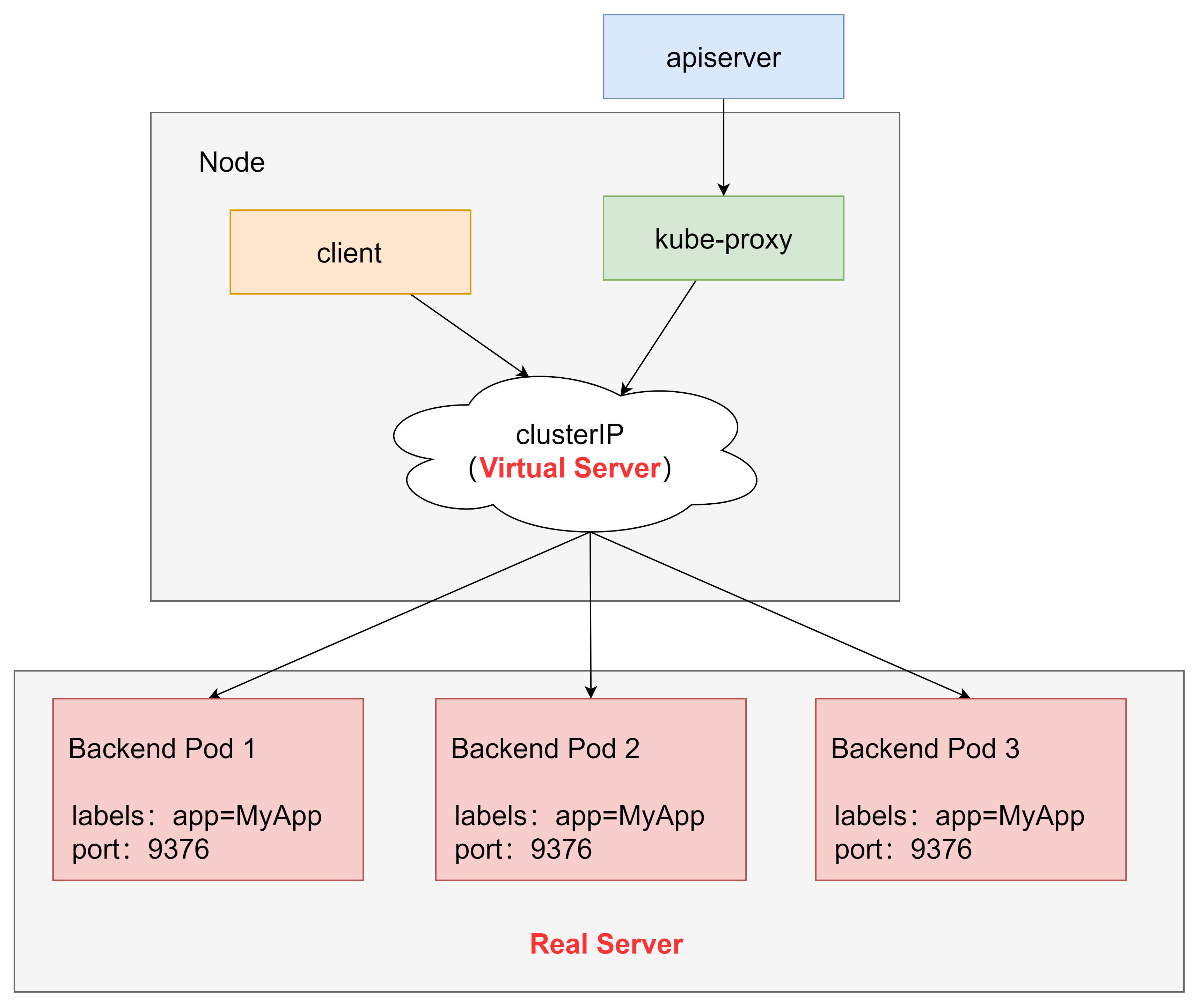 userspace模式下,kube-proxy为service后端的每个service创建一个监听端口,发向cluster ip的请求被iptables规则重定向到kube-proxy监听的端口上,kube-proxy根据LB算法选择一个提供服务的pod并和其建立连接,以将请求转发到pod上。
